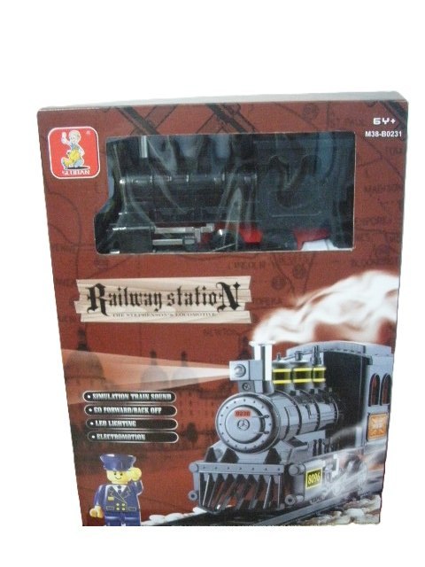 Zestaw składający się z lokomotywy o napędzie elektrycznym. Lokomotywa jest zasilana bateryjnie, jeździ w dwóch kierunkach, wydaje dźwięki i ma wbudowaną lampkę. Lokomotywa jest w całości. W zestawie nie ma figurek. Tor składaja się z 12 elementów łukowych i 4 prostych, z których można zbudować owal o wymiarach 128,6x87cm.