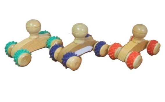 Masażer drewniany z uchwytem 4 rolki