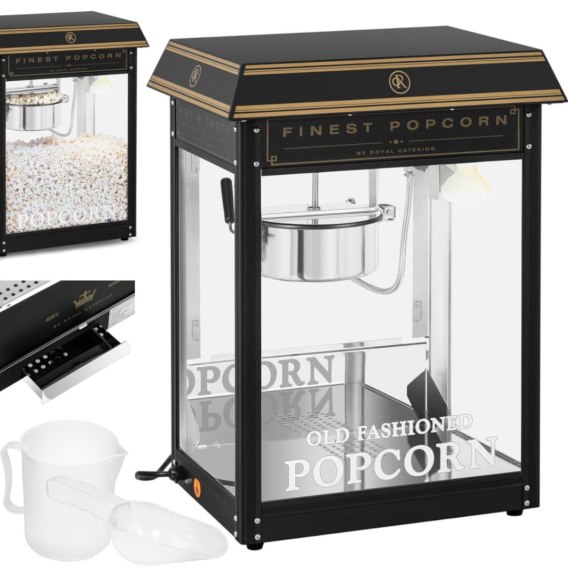 Maszyna do popcornu marki Royal Catering idealnie sprawdzi się do przyrządzania dużej ilości przekąsek w krótkim czasie w kinach, na festynach, jarmarkach oraz innych wydarzeniach.