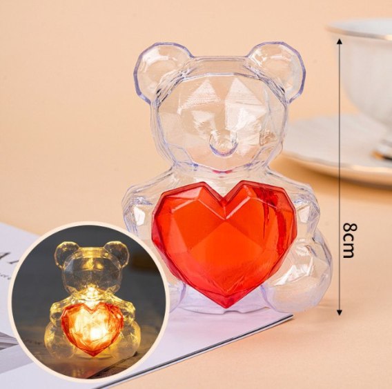 Miś niedźwiadek 8 x 7 cm led transparentny z czerwonym sercem LGB-2402