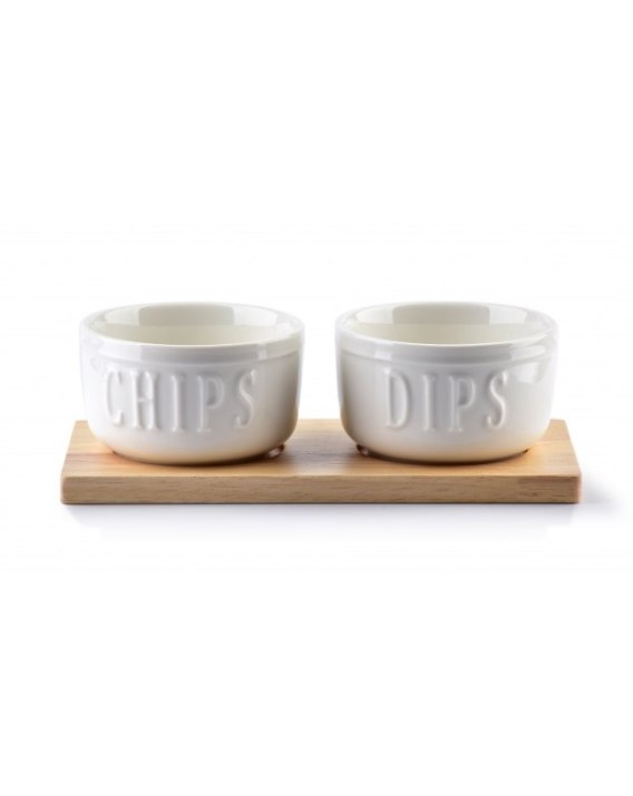 • Miseczki 2szt. biała porcelana z drewnianą deską