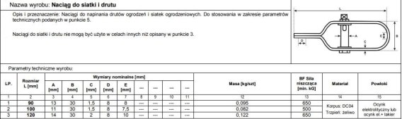 NAPINACZ SIATKI 120MM OCYNKOWANY