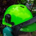Ochraniacz słuchu, głowy i wzroku 3 w 1 VERTO (nr ref. 97H300) to uniwersalny produkt do zastosowania w pracach z kosą spalinową, pilarką łańcuchową i innych, gdy użytkownik potrzebuje zapewnić sobie kompletną ochronę słuchu, głowy i wzroku.