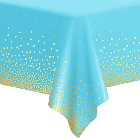 OBRUS FOLIOWY - Niebieski w złote konfetti.