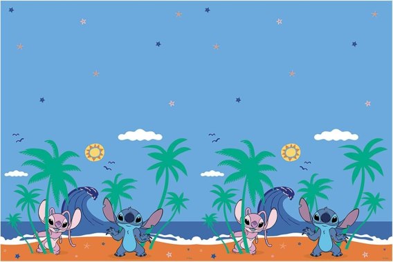 Plastikowy obrus z motywem Stitcha o wymiarach 120 x 180 cm. Idealny na urodziny i imprezy tematyczne, chroni stół i dodaje wyjątkowego charakteru przyjęciu.