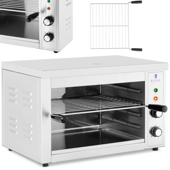 Opiekacz marki Royal Catering sprawdzi się w restauracji czy barze do przygotowywania gorących przekąsek. Piekarnik powstał z myślą o komercyjnym użytku w branży gastronomicznej. Posłuży do przyrządzenia tostów, bagietek lub różnego rodzaju zapiekanek. Wydajny element grzewczy bardzo szybko osiąga pożądaną temperaturę dzięki mocy 3000 W. Jej wartość reguluje się za pomocą pokrętła w zakresie 50-300deg;C. Termostat utrzymuje temperaturę na stałym poziomie podczas procesu grillowania. Wbudowany timer z sygnałem dźwiękowym sprawi, że Twoje potrawy będą zawsze gotowe we właściwym czasie (0-30 min).