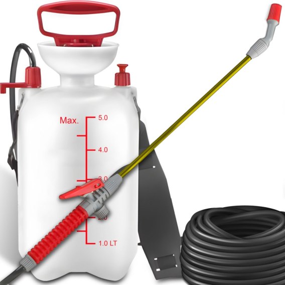 • Opryskiwacz ogrodowy ręczny ciśnieniowy 5 l - biało czerwony