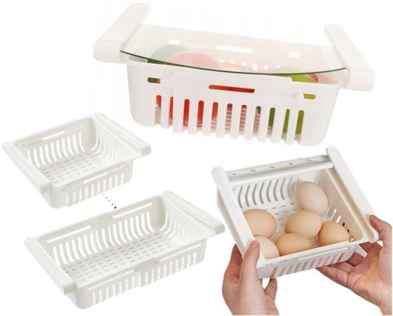 Organizer szuflada do lodówki na żywność rozsuwana półka pojemnik biały V2 PID1693