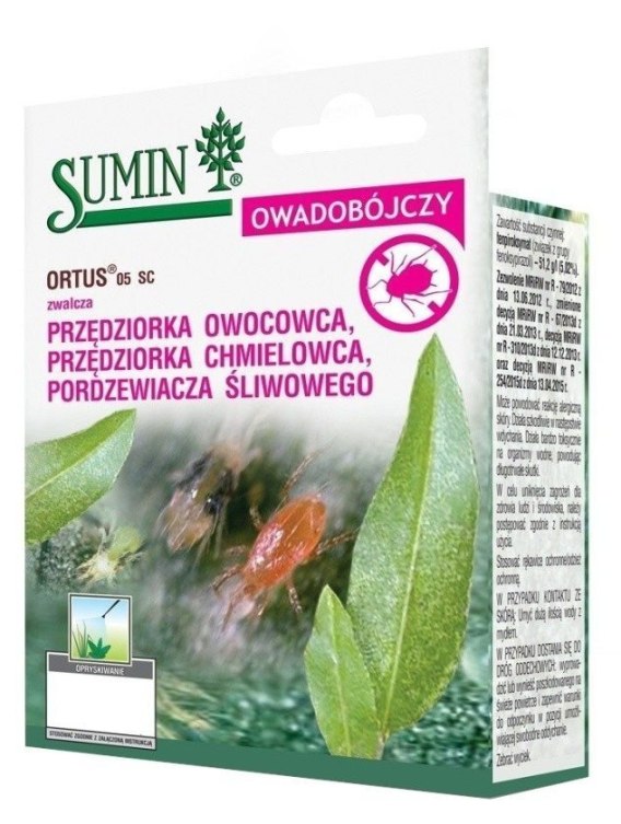 ORTUS 05 SC jest środkiem przędziorkobójczym w formie koncentratu w postaci stężonej zawiesiny do rozcieńczania wodą, o działaniu kontaktowym i żołądkowym, przeznaczony do zwalczania przędziorków i szpecieli w uprawach jabłoni, gruszy, śliwy, agrestu, maliny, porzeczki białej, porzeczki czerwonej, porzeczki czarnej, truskawki, winorośli, uprawianych pod osłonami: cukinii, oberżyny, papryki, pomidora, ogórka, uprawianych w gruncie i pod osłonami roślin ozdobnych. Zwalcza wszystkie ruchome stadia rozwojowe przędziorków. Na roślinie działa powierzchniowo. Środek Ortus 05 SC stosowany jest przy użyciu opryskiwaczy ręcznych.