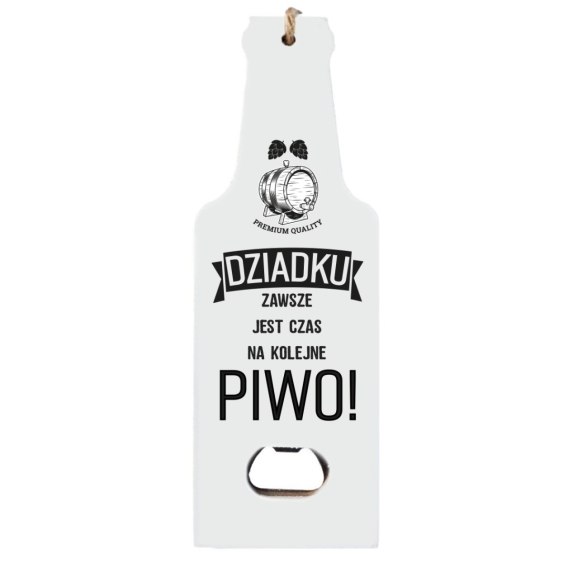 Otwieracz drewniany "DZIADKU zawsze jest czas na kolejne piwo" biały 7x19,5