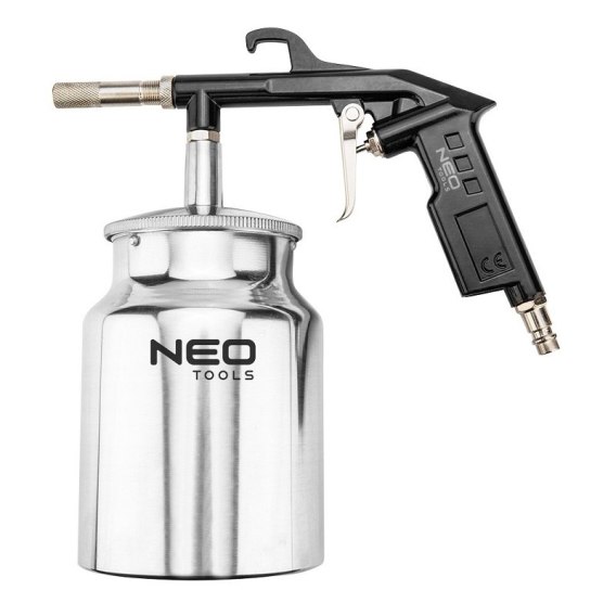 Pistolet do piaskowania NEO ze zbiornikiem o pojemności 1 l. Posiada praktyczny uchwyt do podwieszania. Maksymalne ciśnienie robocze 6 bar. Certyfikat CE potwierdza wysoką jakość narzędzia.