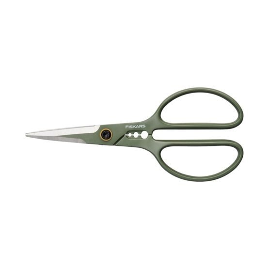 Nożyczki do pielęgnacji roślin Fiskars z pojemnikiem idealnie nadają się do cięcia żywych roślin domowych i kwiatów, wspomagając zdrowy wzrost w zielonych przestrzeniach