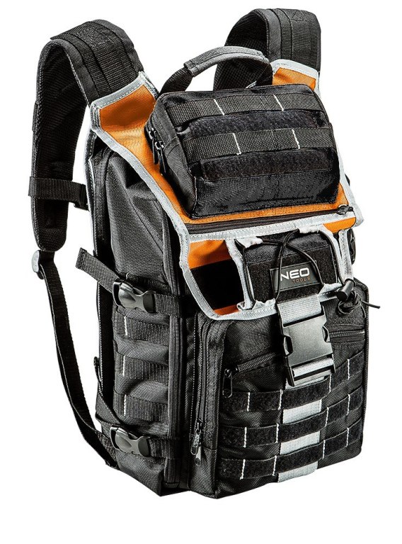 Plecak monterski NEO wykonany z trwałego poliestru 600 D, gwarantującego długoletnią trwałość torby.