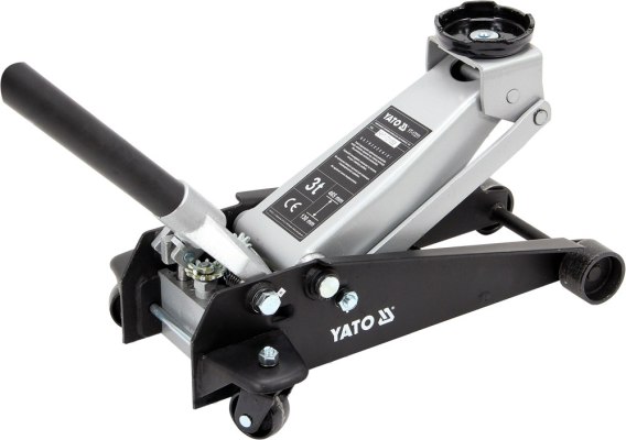 Wysokiej jakości podnośnik samochodowy marki YATO. Nośność 3T. Posiada konstrukcję opartą o zasadę dźwignika ramieniowego z napędem hydraulicznym działającym w osi poziomej.