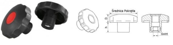 Pokrętło gwiazdowe wykonane z tworzywa sztucznego Polipropylenu z zalanym gwintem stalowym ocynkowanym .