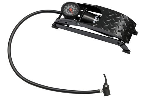 Pompka nożna jednotłokowa o solidnej konstrukcji, wykonana z tłoczonej, lakierowanej blachy stalowej o grubości 3 mm.