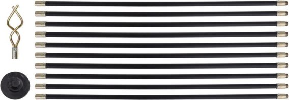 Zawartość zestawu: pręt x10, okrągła gumowa końcówka (O10 cm, grubość 6 mm, zakończona gwintem), podwójna końcówka spiralna (długość 165 mm, średnica pręta 7 mm, zakończona gwintem)