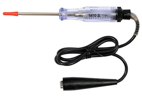 Samochodowy próbnik napięcia wyposażony w diodę LED. Zakres pomiarowy od 6 V do 12 V. Długość kabla 90 cm.