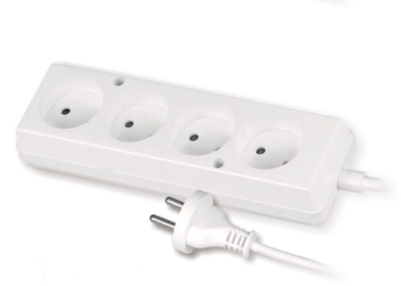 Przedłużacz stały z czterokrotnym gniazdem wtyczkowym 4x2p, 10A.
