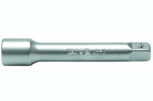Przedłużka współpracuje z nasadkami oraz grzechotkami YATO 1/2". Służy do przeniesienia napędu z grzechotki na nasadkę a jednocześnie umożliwia działanie w trudno dostępnych i głębokich miejscach. Produkt wykonany z wytrzymałej na skręcanie i pęknięcia stali chromowo wanadowej CrV 50BV30, posiada kulkę blokującą i ustalającą nasadkę podczas pracy. Pokrętło z jednej strony ma trzpień o przekroju kwadratowym, z drugiej natomiast gniazdo o przekroju kwadratowym. Gniazdo wyposażone jest w system AS-DRIVE, czyli specjalnie zaokrąglone kąty , pozwalające na zwiększenie momentu obrotowego, bez pęknięcia ścianki gniazda.