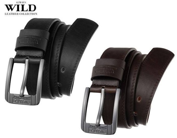 Szeroki pasek męski z metalową klamrą. Odszyty od wewnątrz z wysokiej klasy skóry naturalnej a od zewnątrz ze skóry ekologicznej
