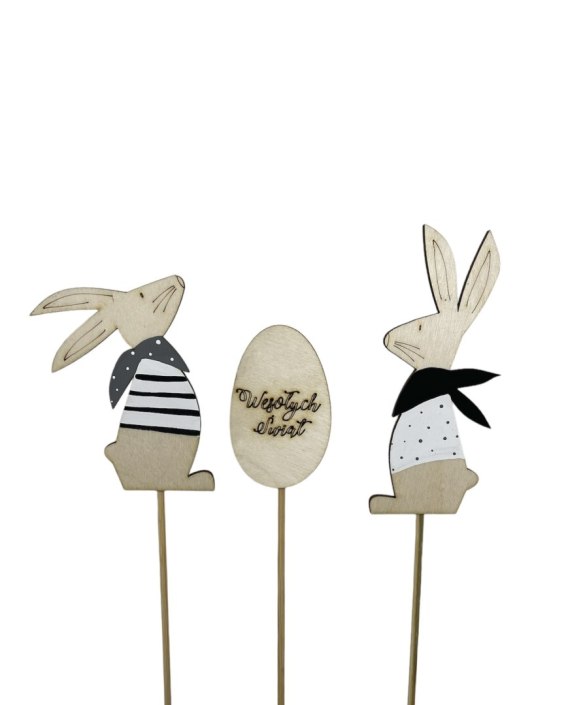 Pik drewniany 3szt. ZAJĄCZKI + JAJKO