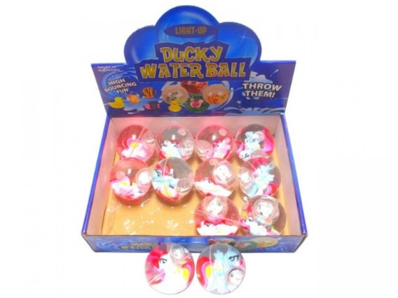 Kolorowa, gumowa piłeczka z zatopioną figurką konika to świetna zabawa dla dzieci! Wypełniona wodą, błyszczy i przykuwa uwagę, a po odbiciu zaczyna świecić migającym światłem, co dodaje frajdy podczas gry.