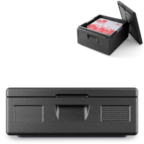 Pojemnik termoizolacyjny do pizzy z serii Kitchen Line marki Hendi to jeden z podstawowych elementów wyposażenia firm cateringowych, pizzerii lub cukierni oferujących dowóz ciepłej oraz zimnej żywności. Został wykonany w całości (bez nitów, spawów czy klejenia) z polipropylenu i zaprojektowany z myślą o długim czasie użytkowania.