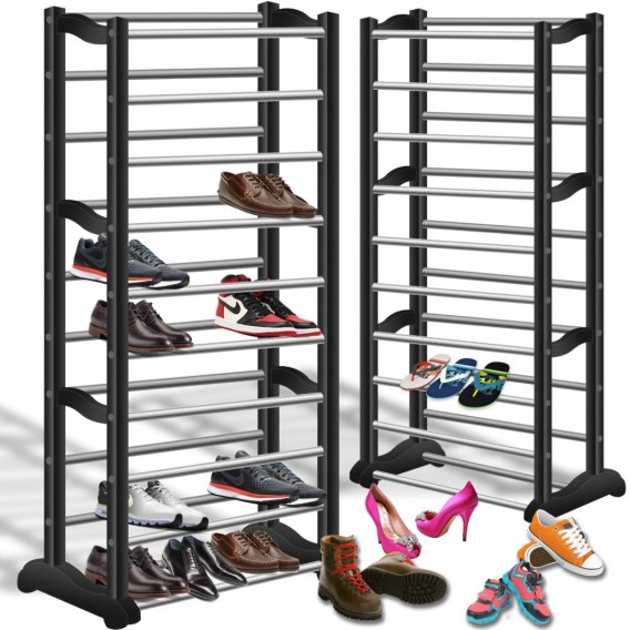 10-poziomowa półka na buty to praktyczny organizer do przechowywania butów w sposób uporządkowany i oszczędzający miejsce. Sprawdzi się w przedpokoju, garderobie czy piwnicy. Półka jest łatwa w montażu i demontażu, a jej wysokość można dostosować do potrzeb użytkownika.
