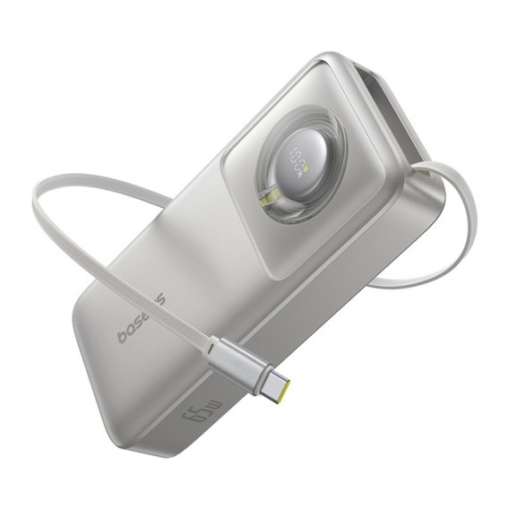 Powerbank 20000mAh 65W ze zwijanym kablem USB-C - szary