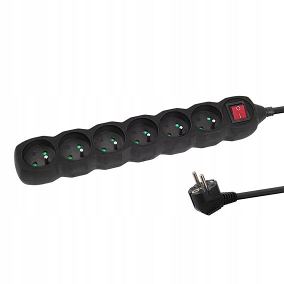 • Przedłużacz listwa zasilająca 6 gniazd z przewodem 1.5m z włącznikiem czarna ELK217K