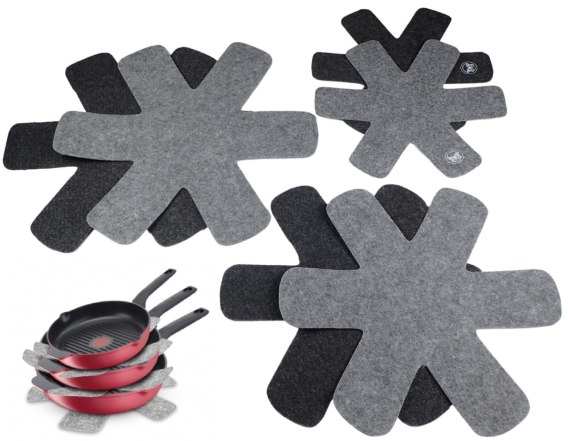 - Komplet sześciu przekładek do patelni wykonanych z FILCU to idealne rozwiązanie, gdy przechowujemy patelnie oraz garnki.