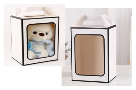 Pudełko 12szt. kartonik prezentowy z rączką BIAŁE z okienkiem 25x18x13cm | NT3433