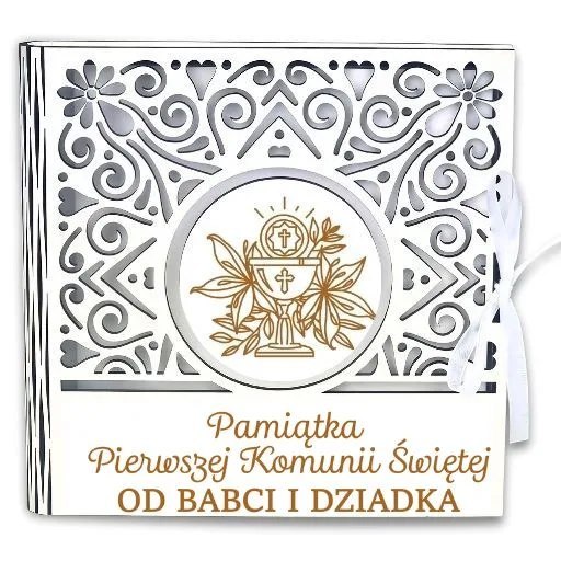 Pudełko na pieniądze kwadrat KOMUNIA- od BABCI i DZIADKA- Ażur 3308A-KOM1B-BD