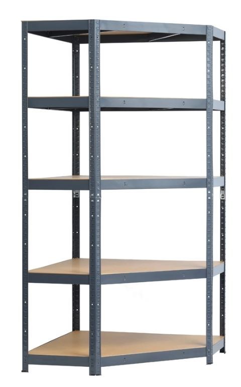 Regał metalowy narożny 180 x 90 x 90 cm 5 półek HDF/175 kg
