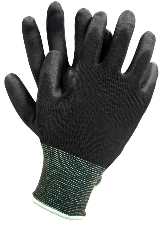 Rękawice ochronne wykonane z poliestru, powlekane poliuretanem.