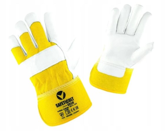 Wytrzymałe rękawice monterskie Safeticult Drum wykonane z naturalnej skóry licowej i bawełny.
