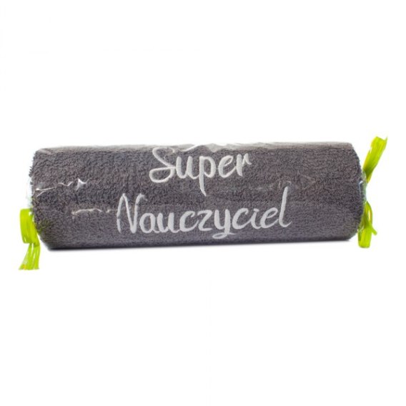 Ręcznik szary cukierek z haftem "Super Nauczyciel"