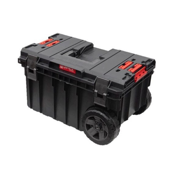 Duża skrzynka narzędziowa na kołach zapewniająca doskonałą mobilność modułowych systemów Qbrick. Dwa koła najazdowe zamontowane na metalowej osi pozwalają na bezpieczny transport zestawów skrzyń i organizerów. Teleskopowa, aluminiowa rączka wysuwana z boku zapewnia komfortowy dostęp do wnętrza skrzyni, jak i pozwala na wygodę prowadzenia skrzyni połączonej z pozostałymi elementami linii ONE dopinanymi za pomocą poliamidowych konektorów. Prosty mechanizm wysuwanej rączki na podwójnym teleskopie blokuje się po lekkim uderzeniu uchwytu od spodu. Zawartość skrzyni została wyposażona w poręczną tacką oraz elastyczną uszczelkę, która zabezpiecza zawartość skrzyni przed przedostawaniem się pyłów oraz wody do jej wnętrza.