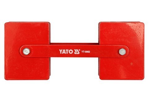 Regulowany w pełnym zakresie ustawień, podwójny kątownik magnetyczny. Wykonany z blachy stalowej oraz silnych magnesów ferrytowych, połączonych stalowymi, ruchomymi łącznikami długości 140 mm. Powierzchnia lakierowana proszkowo. Przeznaczony do czasowego łączenia metalowych elementów podczas spawania, nawiercania, lakierowania, czynności wymagających używania obu rąk. Udźwig magnesów ok. 22,5 kg /szt.