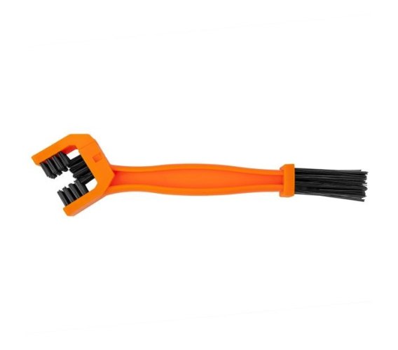 Jedna strona szczotki dedykowana jest precyzyjnemu oczyszczeniu w kształcie litery ,,U" - druga pomaga dostać się do trudno dostępnych miejsc, ze względu na pociągły, wąski kształt. Długość elementu wynosi 24,5 cm i wykonany został z trwałego tworzywa sztucznego. Za sprawą innowacyjnej konstrukcji, łańcuch oczyszczany jest z każdej ze stron. Wykorzystując do tej czynności odpowiednie płyny - łatwo można usunąć z łańcucha kurz, piasek oraz stary smar. Należy pamiętać, aby przed przystąpieniem do czyszczenia, wyłączyć silnik oraz założyć ochronne rękawice i okulary