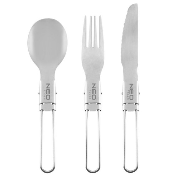 Sztućce turystyczne 3 w 1 63-148 marki NEO to zestaw składający się na łyżkę, nóż oraz widelec.