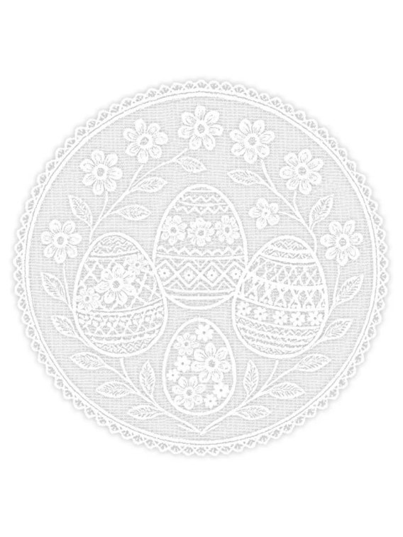 Serwetka na koszyczek z wielkanocnymi wzorami to elegancki dodatek, który podkreśla tradycyjny i świąteczny charakter koszyka. Ażurowy wzór z motywami pisanek, zajączków i roślinnych ornamentów nadaje całości lekkości oraz dekoracyjnego wyrazu. Biały kolor sprawia, że serwetka doskonale komponuje się z różnymi koszyczkami i dodatkami wielkanocnymi, tworząc spójną i estetyczną aranżację. Okrągły kształt o średnicy 40 cm pozwala na wygodne ułożenie serwetki w koszyczku lub wykorzystanie jej jako samodzielnej dekoracji.
