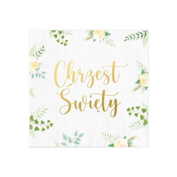 Serwetki papierowe w kolorze białym ze złotym metalizowanym napisem Chrzest Święty.