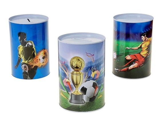 Skarbonka metalowa puszka 15 x 13,5cm wzór piłka nożna