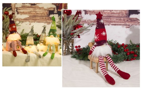 Dekoracja świąteczna SKRZAT świecący ze zwisającymi nogami czerwony