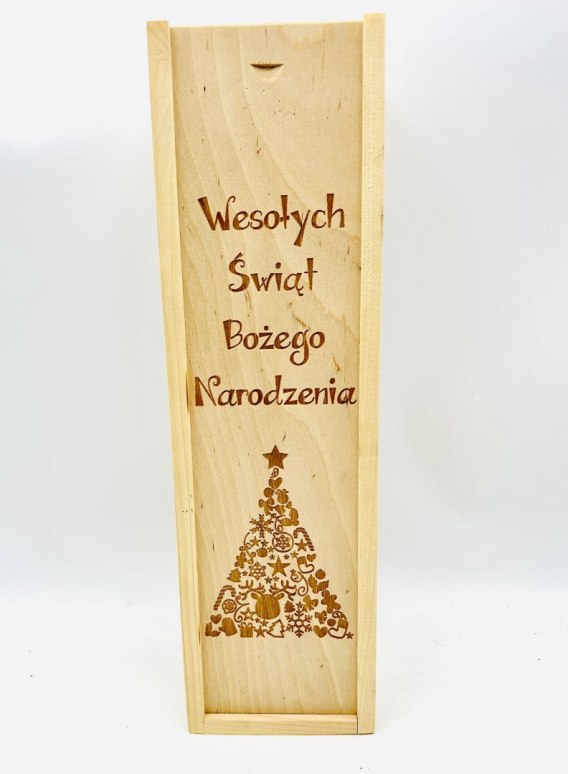 Skrzynka na wino grawerowana Wesołych Świąt 38 x 10 cm. - P587