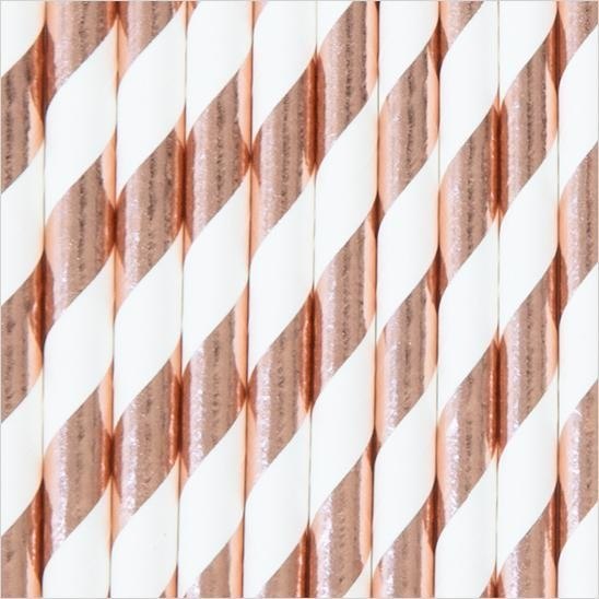 Słomki papierowe paski różowe złoto 10szt. x 12szt. | 512364