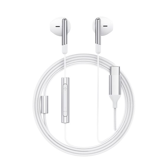 Słuchawki przewodowe z mikrofonem i pilotem USB-C 1.2m - białe