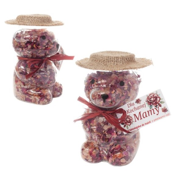 Sól himalajska "Dla Kochanej Mamy" z płatkami róż, pojemnik miś